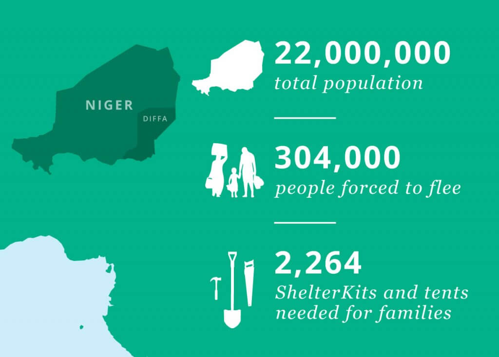 In den letzten Jahren hat Niger Tausende von Geflüchteten sowohl aus Nigeria als auch aus Mali aufgenommen. Familien aus Nigeria fliehen vor der Terrororganisation Boko Haram, während Familien aus Mali aufgrund der politischen Instabilität das Land verlassen.