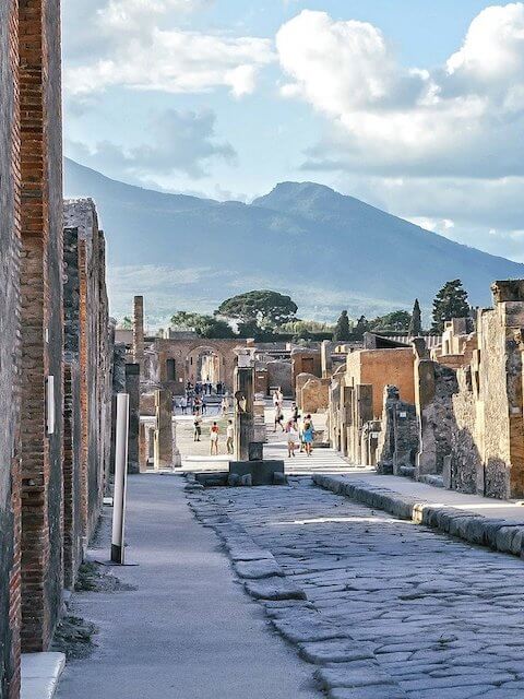 Die archäologische Stätte Pompeji ist heute ein Tourismusmagnet (kleines Bild oben links © Pixabay/ Duotone, großes Bild unten © Pixabay/ mmillswan). Tausende Menschen starben beim Ausbruch am 24. August 79 n. Chr. und wurden dabei unter einer sechs bis sieben Meter hohen Ascheschicht begraben und somit für die Nachwelt konserviert (kleines Bild oben rechts © Pixabay/ k6gmf6).